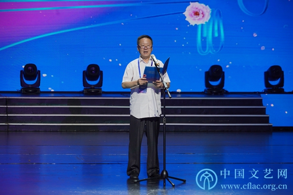 8月18日晚,由中国音乐家协会、宁波市委宣传部共同主办的中国音乐小金钟——2019全国琵琶展演闭幕音乐会在浙江宁波镇海举行。图为中国音协副主席赵塔里木致辞。 中国文艺网 王渝 摄