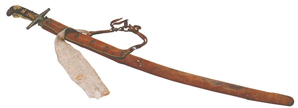 根据记载,这把腰刀是乾隆二十年十二月,准噶尔达什达瓦之妻遣头人厄齐尔来献。达什达瓦是小策凌敦多布第三子。达什达瓦及其子在准噶尔内部混乱的夺权斗争中被杀害,从此,这部人马由他的寡妻率领。乾隆二十年,清军开始对阿睦尔撒纳的叛乱进行大规模平定,此时达什达瓦之妻便调集本部属战斗人员主动参与,她率领的这路军队从阿尔泰山山麓出发,一直密切配合清军直捣敌营,英勇作战,立下了不朽功勋。该年十一月,为摆脱阿睦尔撒纳的吞并,达什达瓦部毅然离开水草丰盛的伊犁,迁移至清军西北大营巴里坤,主动归附大清。乾隆皇帝除了拨调大批银两、牛羊、茶叶接济该部外,还派出钦差封赐达什达瓦的妻子为“车臣默尔根哈敦” (蒙古语“聪明智慧的王妃” ) 。由于年代久远,这位巾帼英雄的名字已经遗失,但大清皇帝的封号却永久留给了后世。不幸的是,她在受封后的第二年因病辞世,葬于新疆。达什达瓦部内迁至巴里坤后仍未摆脱生存困境,巴里坤这时也是一片狼藉,达什达瓦人的生存环境并未明显好转,为此,乾隆采纳军机大臣的建议,决定把他们先安置在科布多延途一带放牧, 1756年秋迁鄂尔昆,并再次接济他们二百头牛、六千只羊和从山西调来的籽种、农具。达什达瓦人虽然暂时安定下来,但窘困状况远未从根本上解决。因此,清廷随后又应达什达瓦部之求,一支于1757年迁往察哈尔,一支于1758年迁往热河(承德) 。