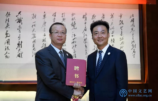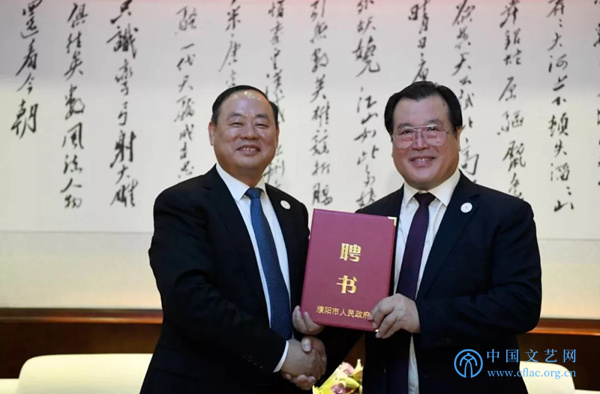 9月26日,第四届中国杂技艺术节闭幕式在河南濮阳水秀国际大剧院举行。图为边发吉被聘为濮阳市政府顾问。