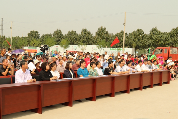 9月27日,庆祝中华人民共和国成立70周年“金穗欢歌来 奋进新时代”——2019中国文联文艺志愿服务助力京津冀中国农民丰收节主题活动在河北省南宫市举办。图为领导观看演出。中国文艺网 苏锐 摄