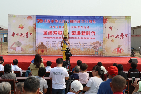9月27日,庆祝中华人民共和国成立70周年“金穗欢歌来 奋进新时代”——2019中国文联文艺志愿服务助力京津冀中国农民丰收节主题活动在河北省南宫市举办。图为演出现场。中国文艺网 苏锐 摄