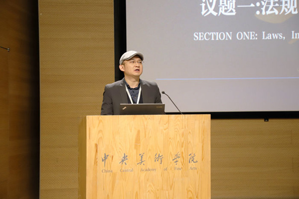 中央财经大学文化与传媒学院院长、拍卖中心主任刘双舟教授则基于中国关于艺术金融制度的困境与制度创新进行发言。围绕着“制度、法规与市场形构”的议题,刘双舟教授首先分析了中国当前艺术相关法律现状与艺术金融制度的现状。结合多年来调研的数据,刘双舟教授指出,由于中国法律制度在艺术领域层面不够完善,我国尚未出台专门针对艺术的相关法律,艺术市场的运行体制建立存在“先天不足”的缺陷,目前艺术市场运行的依据主要基于以国家政策为主的“非法律约束”。同时他强调对艺术金融制度进行“再认识”,“由于艺术金融本身的特殊性,现有的空白领域可能会长期空白,这是整个艺术金融领域必须接受的现实。但立法的空白并不影响艺术金融的发展,艺术金融运作不是无法可依,只是没有针对性的制度安排。”
