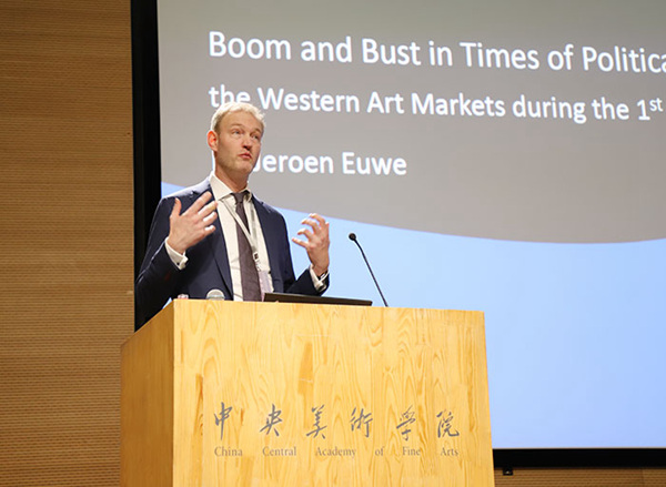 荷兰鹿特丹伊拉斯姆斯大学经济史和国际关系学Jeroen Euwe教授带来了名为《政经危机时刻的繁荣与萧条:20世纪上半叶的西方艺术市场》的主题演讲。以十九世纪后期至二十世纪上半叶的西方艺术市场为例,阐述了西方艺术市场在战争环境与和平年代中呈现出的截然不同的两种趋势,从而进一步挖掘影响艺术市场的深刻因素。