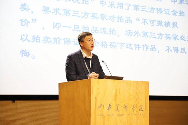 中央财经大学文化与传媒学院院长、教授、拍卖中心主任刘双舟,演讲主题:《艺术金融制度困境与制度创新》