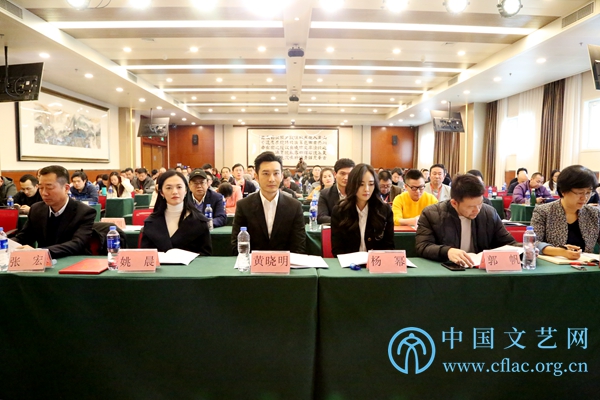 12月17日,中国影协行风建设培训班开班仪式暨中国影协青年和新文艺群体工作委员会成立仪式在京举行,图为新当选的中国影协青年和新文艺群体工作委员会会长黄晓明在开班式上发言。中国文艺网 韩雪竹摄