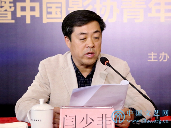 12月17日,中国影协行风建设培训班开班仪式暨中国影协青年和新文艺群体工作委员会成立仪式在京举行,图为中国影协分党组副书记、秘书长闫少非宣读中国影协青年和新文艺群体工作委员会成员名单。中国文艺网 韩雪竹摄