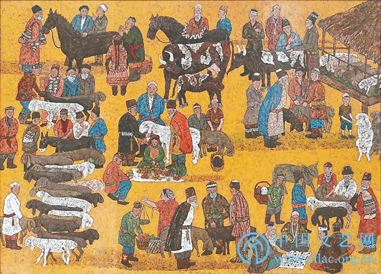 漆艺研修班学员作品《麦盖提的羊巴扎》