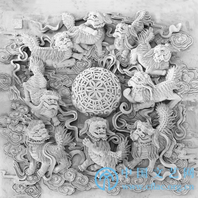 砖雕研修班学员作品《狮子滚绣球》