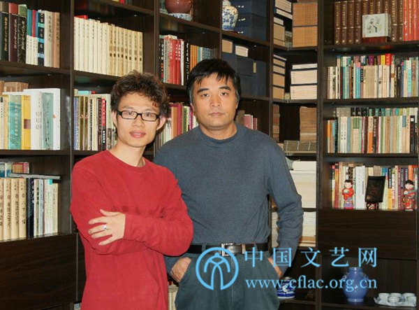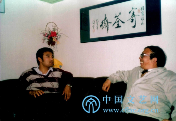 与作曲家鲍元恺教授在天津旧宅书房的"寄荃斋"匾额下交谈