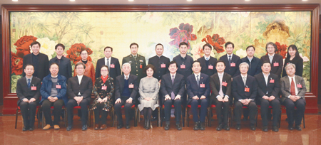 中国文联领导与中国书协第七、八届主席团及协会分党组成员合影。
