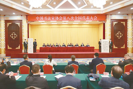 1月26日至1月27日,中国书法家协会第八次全国代表大会在北京举办。会议深入学习贯彻习近平新时代中国特色社会主义思想和党的十九大,十九届二中、三中、四中、五中全会精神,回顾总结协会过去五年的工作经验,研究部署今后五年的工作任务,修改协会章程,选举产生了新一届领导机构。大会强调,要大力加强行业建设,进一步履行职能,团结动员广大书法工作者以良好的精神风貌开启全面建设社会主义现代化国家新征程、向第二个百年奋斗目标进军。