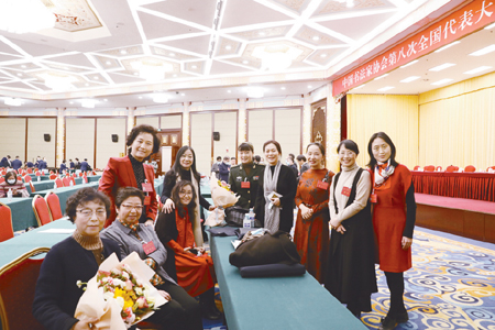 李屹、孙晓云、李昕与到会的中国书协第八届名誉主席、顾问合影。