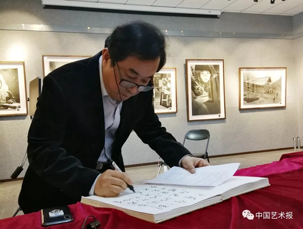 解海龙为《中国艺术报》题词 中国艺术报记者 范雪娇 摄