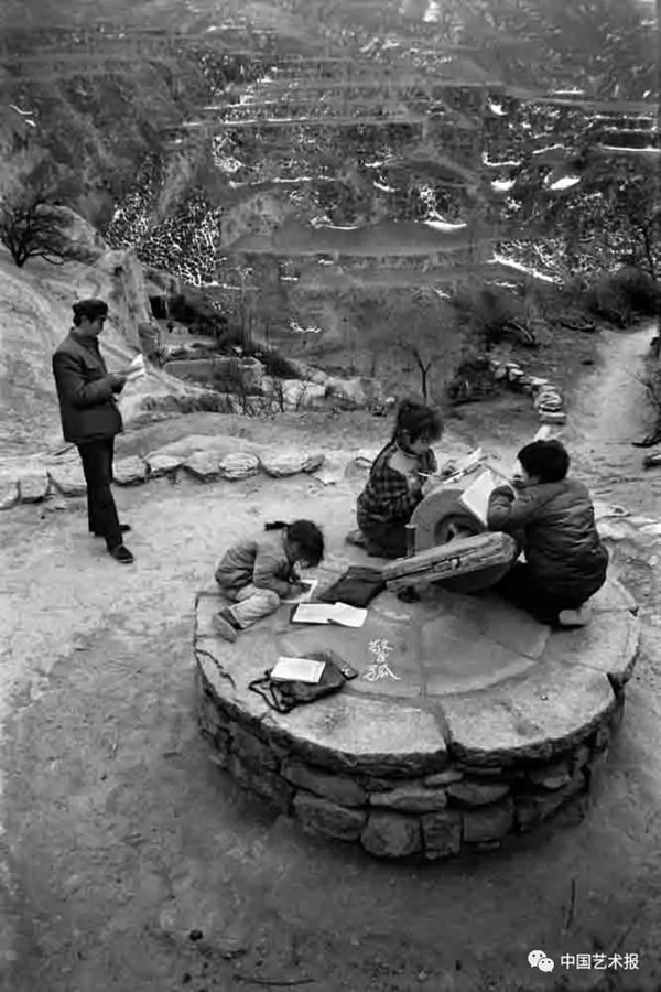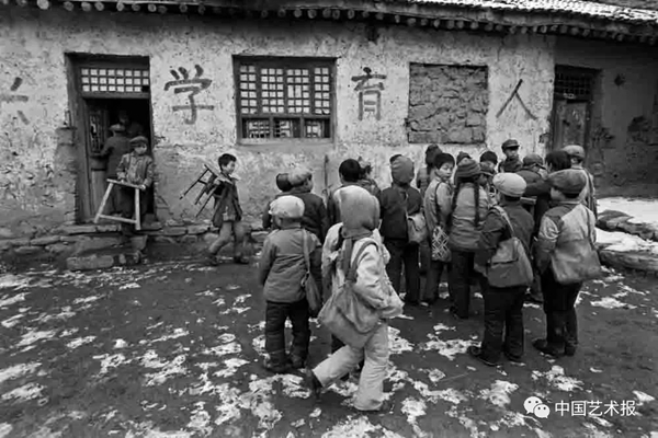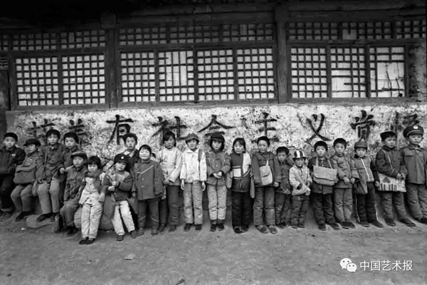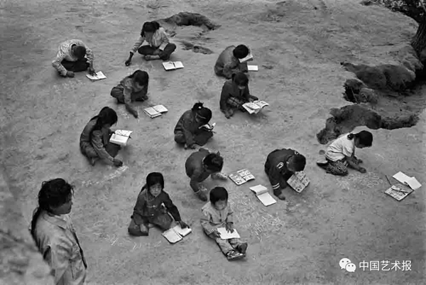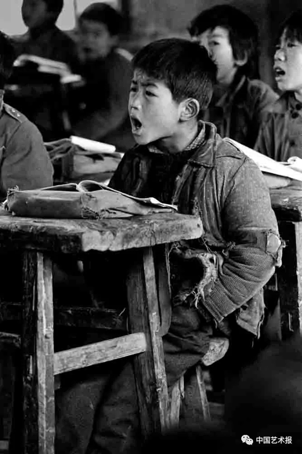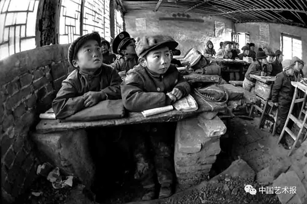 1991年9月,陕西省佳县贺家岩村小学,遇到阴天,教室里便很昏暗,学生们就在室外上课