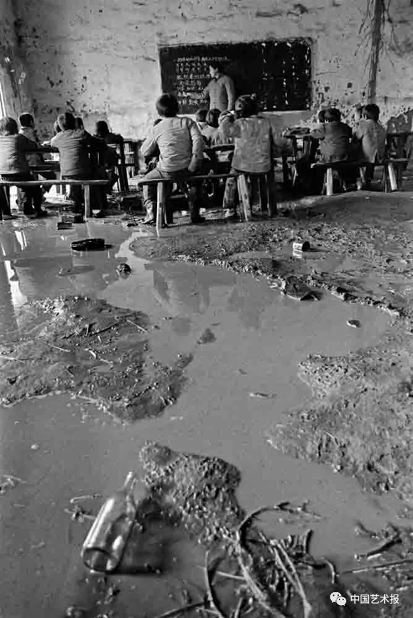 1991年4月,湖北省红安县七里坪镇周七家小学,一场春雨教室便一片泥泞,孩子们继续上课