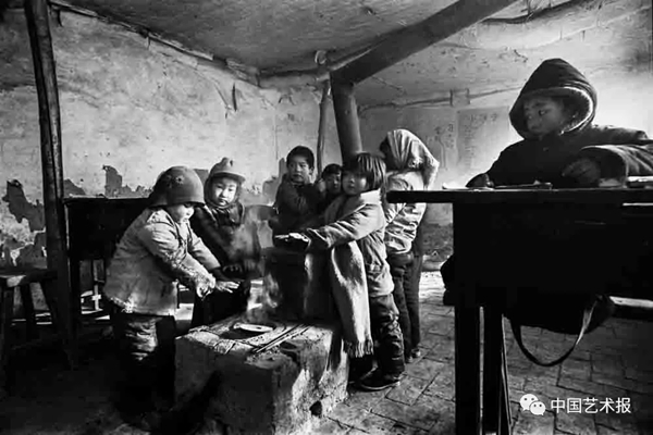1991年12月,河北省滦平县拉海沟乡大店子村小学,气温骤降至零下20度,孩子们烤烤冻僵的小手继续上课