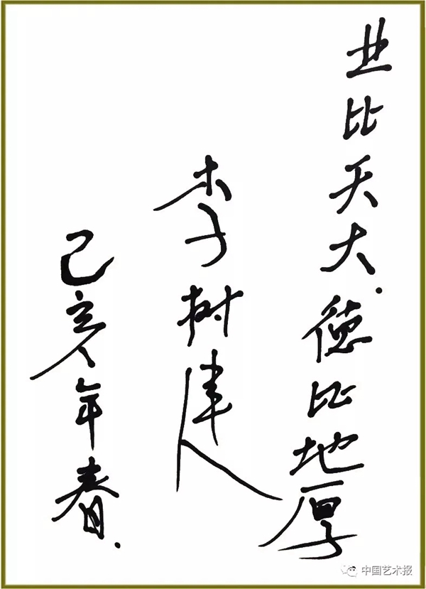 李树建为《中国艺术报》题词:业比天大 德比地厚