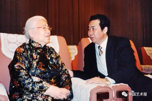 图片2003年,李树建在全国政协礼堂演出时和著名豫剧表演艺术家常香玉亲切交谈