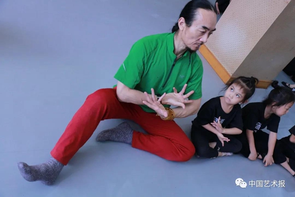 ◎滕爱民:大概是在20年前,一个国外的艺术团来我们团交流,有一个黑人艺术家站在讲台上,先是给我们讲解剖学在舞蹈中的应用,讲完解剖学,开始给我们讲太极在舞蹈中的应用。这让我觉得很不对劲,解剖学算是你们外国人创立的,你们给我们讲没问题,但太极是我们中国的,怎么能是你们给我们讲?这件事对我触动很大。我认为这个劲儿得较,必须较。于是我找了杨式太极拳第五代传人丁水德老师给我们的所有学员上太极课,一周上两节。经过深入地学习,我理解、领会了不少东西。比如现在我虽然50多岁了,但跳舞这么多年基本上没受过什么大伤,就和学习太极有很大关系。太极的起步很慢,和现代舞的一些基本理念是相通的,都讲究由心而发,由内而外,由慢到快,身体一点一点活动起来,热起来,这样就不容易受伤。而有的舞种的舞蹈演员有时一上来就做很大的动作,这种不科学的方式会损害舞蹈演员的身体,导致其职业生涯比较短。