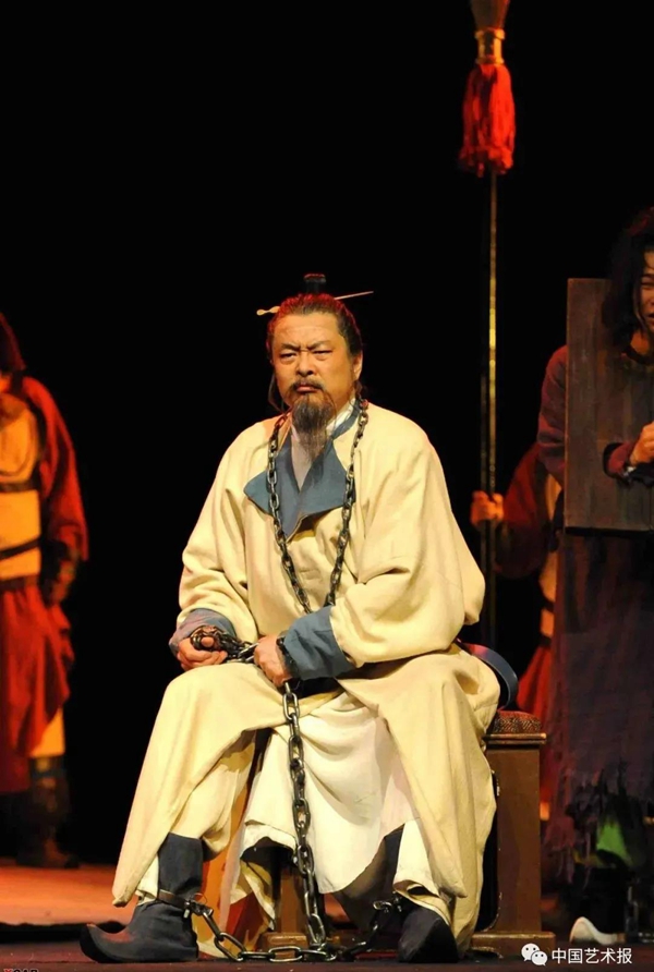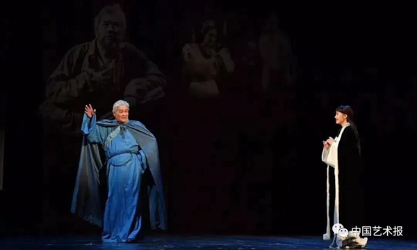 话剧表演艺术家蓝天野在北京人艺建院68周年纪念演出中上演《蔡文姬》片段