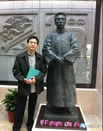 濮存昕在中华世纪坛与鲁迅雕塑合影
