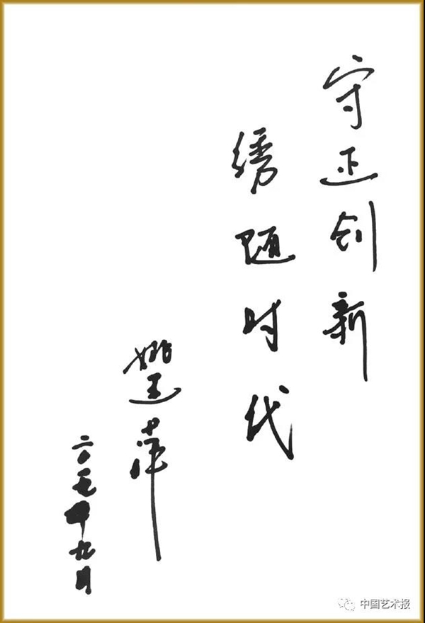 姚建萍为《中国艺术报》题词:守正创新 绣随时代