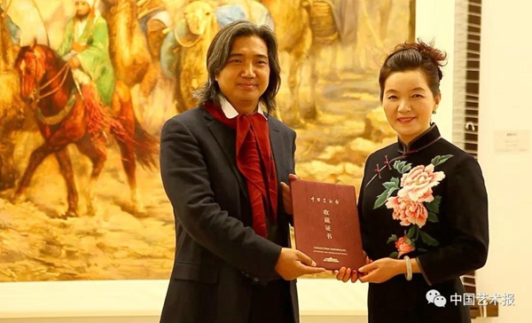 中国美协副主席、中国美术馆馆长吴为山向姚建萍颁发收藏证书