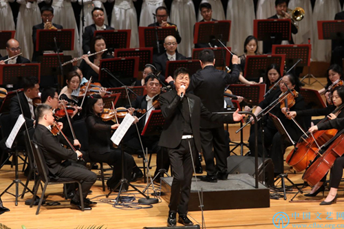 5月25日晚,由中共广州市委宣传部、中国音乐家协会联合推出的原创组歌《我笃信你》交响音乐会在北京中山公园音乐堂举办。图为演出现场。