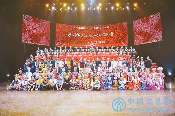 本组图片为出席观看原创歌曲大型演唱会《各族儿女心向党》的领导与主创、演职人员合影,以及各节目表演者。