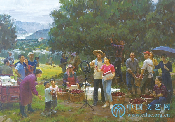 直播助农——协调推进城乡统筹发展(油画) 傅纪中 张晓骏