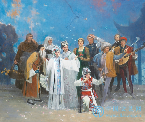 跨越时空的相聚——纪念汤显祖与莎士比亚诞辰400周年(油画) 孙景刚