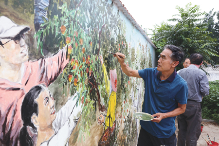 滨州市美术家刘树昭墙绘《采摘乐》创作现场