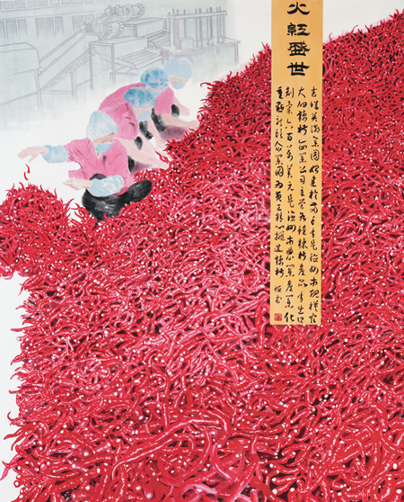 本次展览共展出130余件(组)美术作品。展览作品运用中国画、油画、版画、墙壁彩绘、瓷板画、农民画等艺术形式,寻找积淀在齐鲁大地上的人文资源、自然资源、红色文化、特色农业资源中的美术符号,进行文化内涵的提炼,讲好新时代百花齐放、欣欣向荣的山东故事,助力乡村振兴。其中,大量运用中国画写生和墙体彩绘等艺术形式,将寻找和提炼出的各地美术符号在乡村落地开花,直观体现齐鲁大地美丽乡村的精神风貌,使村民在视觉震撼与趣味互动中,零距离体会高雅艺术的审美享受和潜移默化的历史文化熏陶,是本次展览的一个突出特点。另外,除了人文风物,提炼各地特色农业资源的符号入画,成为这次展览作品题材的另一个显著特点。譬如滨州市的沾化冬枣、青岛市的平度葡萄和胶州大白菜、济宁市的金乡大蒜、菏泽市的曹县牡丹、枣庄市的峄城石榴、临沂市的临沭柳编和平邑金银花、烟台市的龙口粉丝和栖霞苹果、潍坊市的寿光蔬菜、日照市的五莲绿茶……不但丰富了中国美术创作的题材,而且使之艺术再现为地域性美术符号,培育和强化地方文化品牌的社会影响力,促进地方文旅融合和文创产业的发展,通过文化软实力来助推乡村经济的发展。