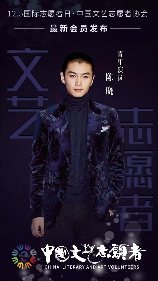 在2017年12月5日第32个国际志愿者日到来之际,陈晓作为新文艺群体代表加入中国文艺志愿者协会。