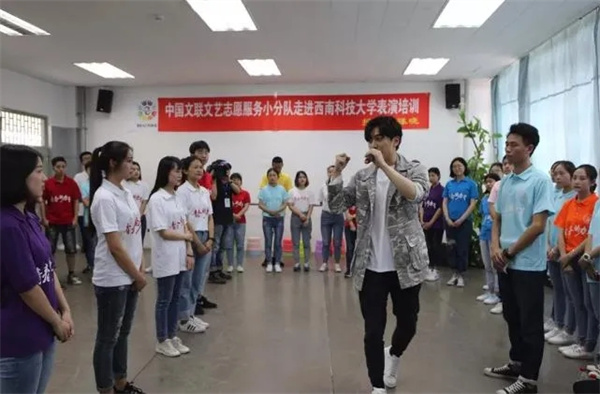 2018年5月,陈晓跟随中国文联文艺志愿服务小分队为西南科技大学学生开展表演培训。