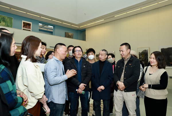 在现场,顺德南风艺术部落的美术家围着中国国家画院的老师们请教,请老师点评画作,不放过这次难得自我提升的机会。“希望通过画作跟我们的专家交流,学习提高。”画家梁直南说。画家胡宇鸣也显得很开心,“有人喜欢我的画,这让我非常开心。”