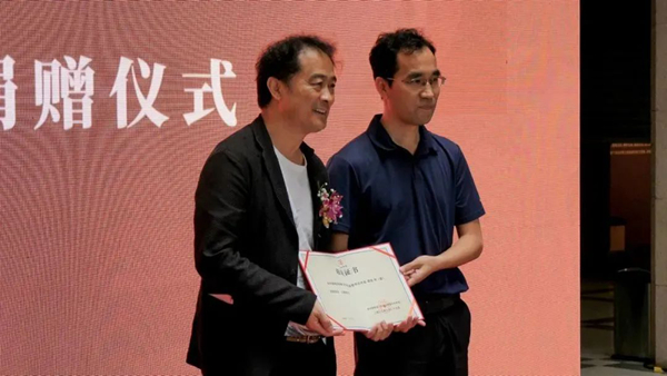 徐州博物馆副馆长原丰向李守银颁发作品收藏证书