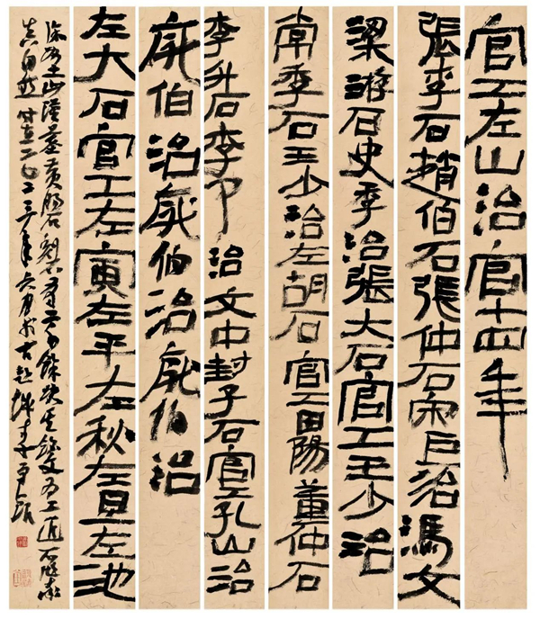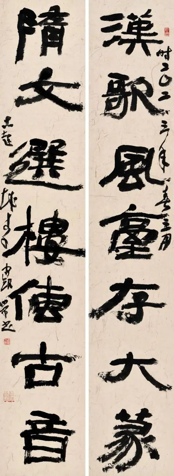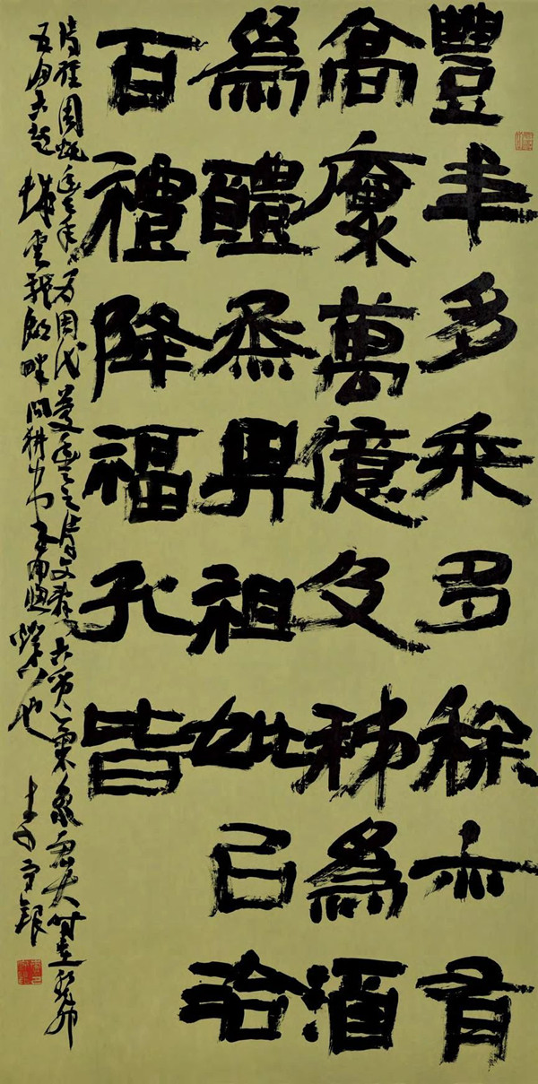 此次展览共展出李守银书法作品50幅,分为临摹题跋及新近创作两个部分。临摹题跋部分主要展示李守银对徐州近五十年来考古发掘出土的两汉时期汉碑刻石和器物拓片的思考;创作部分则是李守银近十年来立足古彭徐州脚踏实地传承创新之作。