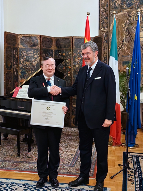 11月13日,中国文联副主席、中央音乐学院院长俞峰在意大利驻华使馆接受了意国家级勋章——“意大利之星”勋章。当晚,意驻华大使安博思在其官邸举办仪式,以意总统名义向俞峰颁发了勋章和证书。