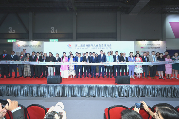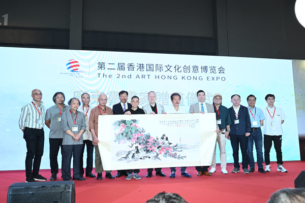 开幕式上,雕塑家许鸿飞、南粤工匠王河、广彩国家级非遗代表性传承人谭广辉等12位广东书画艺术家联合创作了《丹青写美景》,向本届香港文博会传送一份友谊和祝福,愿粤港澳大湾区艺术界加强交流,向世界传播中国文化,展示中国艺术瑰宝。此外,俄罗斯、津巴布韦、哈萨克斯坦等“一带一路”沿线国家驻港领事应邀参加,对本国特色艺术文化进行了详细的介绍和宣传。