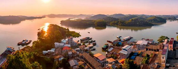 梁杰《运河沿岸》。2022年10月15日,南宁横州市西津库区新福镇平塘江口的清晨。这里是平陆运河的起点