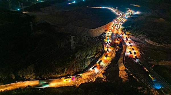 文兵《青年枢纽夜晚施工车队》