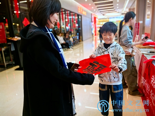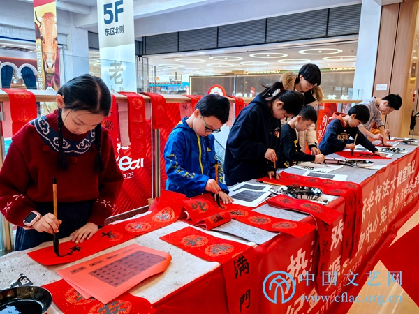 墨香盈京城,福韵贺新春。1月21日至23日,北京世纪金源购物中心联合萧华书法大教室开展了一场别开生面的文化惠民活动。数名孩子在萧华的带领下,在世纪金源购物中心挥毫泼墨,为北京市民免费书写春联和“福”字,传递新春祝福和美好愿景。