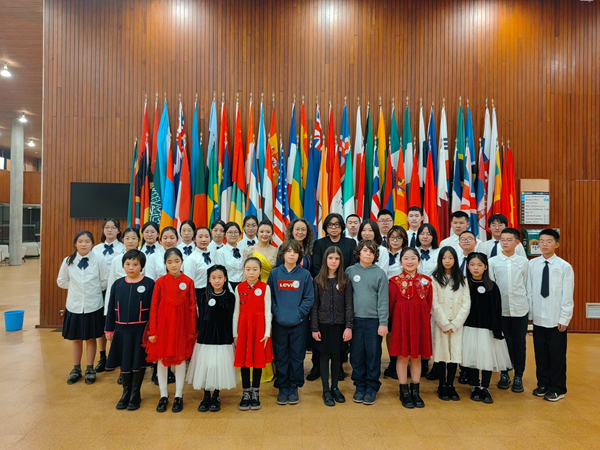 “希望与未来”国际青少年文化艺术交流团中方代表于1月31日、2月1日先后在联合国教科文组织总部和巴黎共和国广场,表演了合唱、独唱、民族器乐、中国传统武术等节目,并展出了中国青少年20余件美术作品,充分向世界展示了新时代中国青少年的风采。