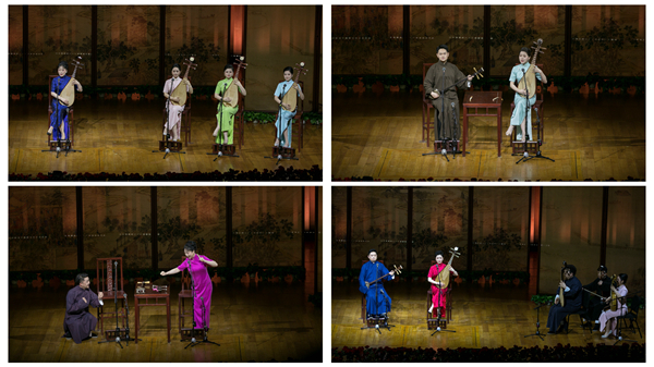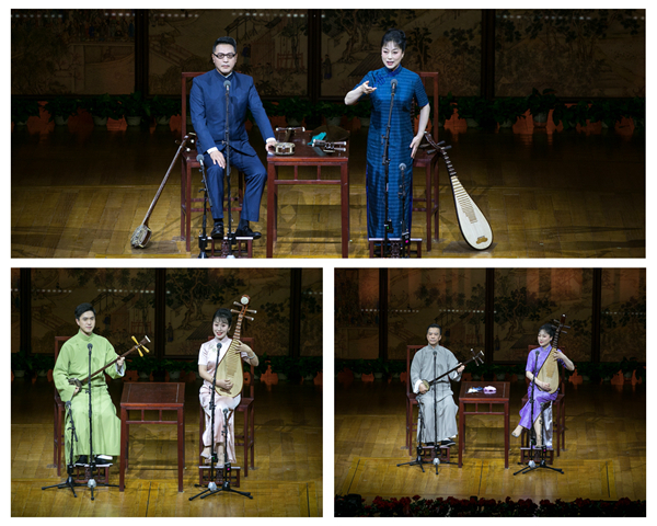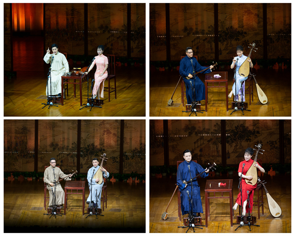 本场演出由上海评弹团团长、一级演员高博文和青年评弹演员袁佳颖作为讲述人,串联整个故事。脚本统筹盛小云。青年评弹演员陆佳麒、谢岚以青春靓丽的面孔率先亮相,表演的《北洋春》生动形象,引人入胜,如描述樊家树与何丽娜吃西餐的生活场景,令人不禁莞尔。苏州评弹艺术促进会会长、演员施斌先后与盛小云、高博文拼档表演《雪庐夜宴》《花落谁家》,说表清脱,“Xin”意迭出。特别是在国家大剧院的舞台上,首次出现男双档(施斌与高博文)的演出,给人耳目一新之感。最后的《雨夜婚变》由评弹演员吴伟东与盛小云搭档演出,吴侬软语间声情并茂,人物刻画细腻,表演更是惟妙惟肖,为首都观众带来一场美轮美奂的江南特色视听盛宴。