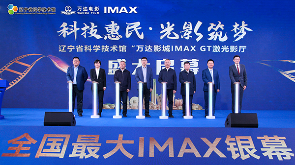 3月12日,辽宁省科学技术馆“万达影城IMAX GT影厅”启动仪式在辽宁省科学技术馆举行。本次活动以“科技惠民·光影筑梦”为主题,辽宁省科协党组书记、副主席冯文胜,辽宁省委宣传部副部长兼省电影局局长杨利景,沈阳市政府副市长刘克斌,沈阳市委宣传部副部长杨建学,沈阳市浑南区政府副区长李玉芳,辽宁省科学技术馆党委书记刘晓峰,万达电影助理总裁兼万达院线总经理李劲波,IMAX中国市场部副总裁曹增恺及百余位观众代表出席,共同见证了全国最大IMAX银幕首场院线电影的放映。