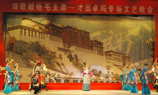 当天晚上,韶山礼堂座无虚席,“颂歌献给毛主席——才旦卓玛专场文艺晚会”在观众的热切期盼中隆重开幕。站在舞台中央的才旦卓玛朴实端庄,用纯净明亮的嗓音声情并茂地唱起“北京的金山上光芒照四方,毛主席就是那金色的太阳……”一曲歌罢,掌声四起。接下来,《唱支山歌给党听》《毛主席的光辉》《翻身农奴把歌唱》《想念毛主席》……每一首歌都饱含着才旦卓玛发自肺腑对党和毛主席的热爱之情,饱含着藏族人民对党和毛主席的感恩之情。每当才旦卓玛唱完一首歌,观众席都会爆发出雷鸣般的掌声和由衷的赞美声。演出结束后,一部分观众迟迟不肯离去,一定要当面向才旦卓玛致谢。他们当中有离休军人、退休干部,还有曾经在西藏工作的老同志,他们对才旦卓玛专程到韶山拜祭毛主席深表敬意和感谢。一位离休军人握着才旦卓玛的手激动地说:“听着您的歌,让我更加怀念毛主席,怀念跟着毛主席赴汤蹈火干革命的岁月。”