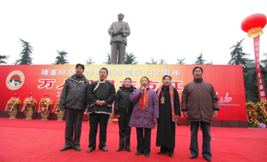 才旦卓玛在湘潭毛泽东同志铜像广场领唱《东方红》