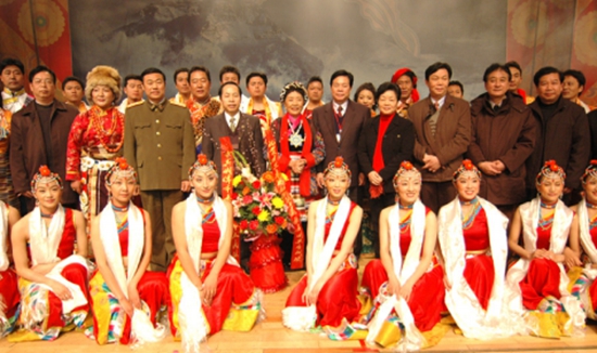 湘潭剧场演出结束后才旦卓玛等演员与领导合影