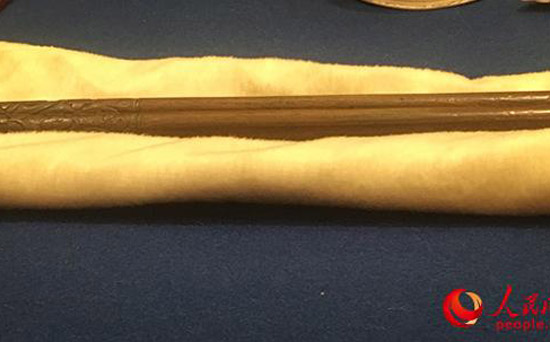 谭鑫培先生生前用过的鼓槌(人民网陈灿 摄)